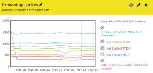 On the chart each product is represented by a single line (which can be switched on/off). If you analyze the above example, you’ll see that there very several products whose price dropped on Mar-24, and they went up on Mar-28. This indicates a probable promotion (or another kind of temporary discount) offered on this site – for these products.