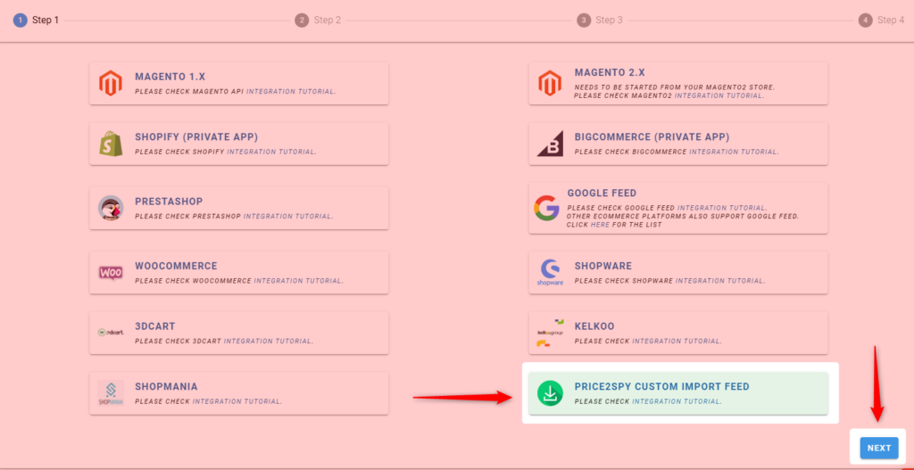 - Then, select PRICE2SPY CUSTOM IMPORT FEED.