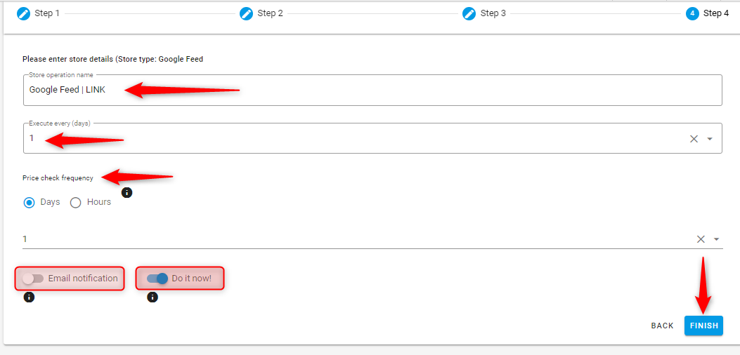 - Click on FINISH to have products from the Google Shopping feed will be imported into Price2Spy.