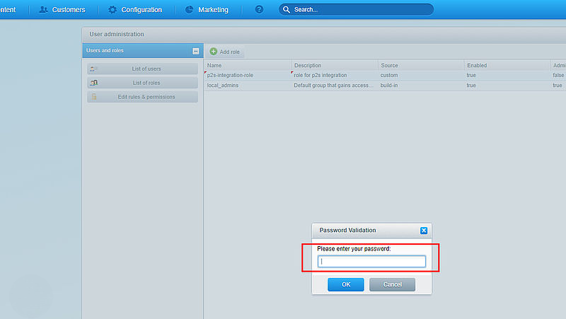 - Shopware 5.x will ask for password validation, please enter your password and click OK
